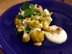 Curry yogurt roasted cauliflower