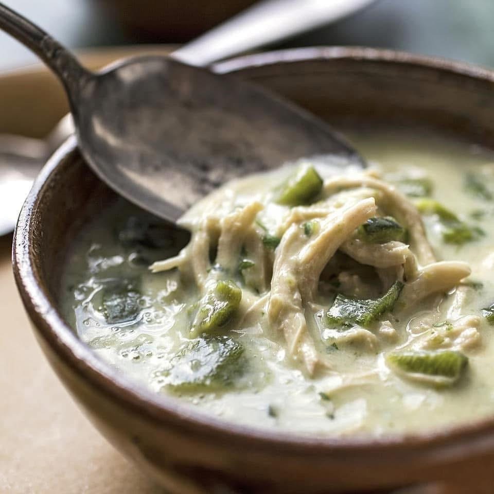 Add broth, pre-cooked chicken breast, cumin, canned green chilies, and jalapeno.