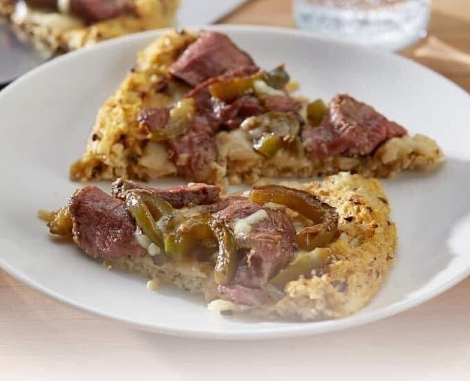 Steak Fajita Cauliflower Crust Pizza Yield: 4 servings Complete Lean & Green Meal: 1 lean, 3 green, 3 condiments Total
